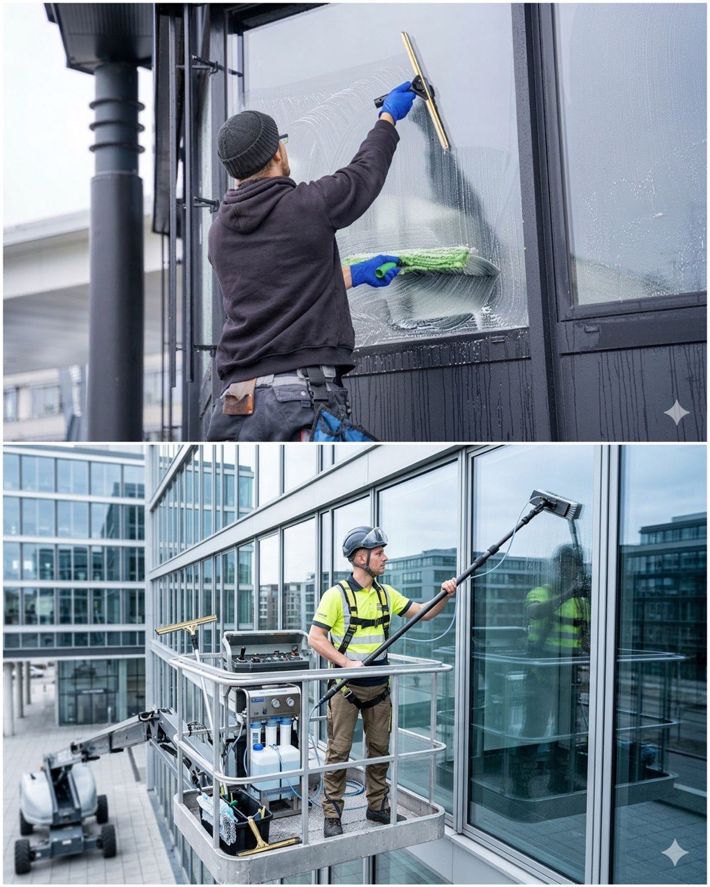 Unser Team sorgt für saubere Büros, gepflegte Gebäude und streifenfreie Glasflächen – gründlich, pünktlich und flexibel.